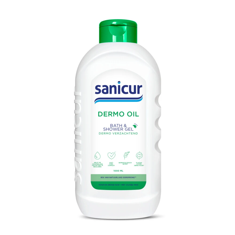 Sanicur Dermo Olie Bad- en DouchegelVerzorg en reinig je huid op milde wijze met Sanicur Dermo Olie Bad en Douche Gel. De douchegel bevat extra vochtregulerende bestanddelen en is zacht voor je huid. De frisse, milde geur zorgt voor een goed begin van je dag. Sanicur Dermo Olie Bad en Douche Gel is geschikt voor iedere dag. De douchegel is pH-neutraal en heeft een huidbeschermende functie.