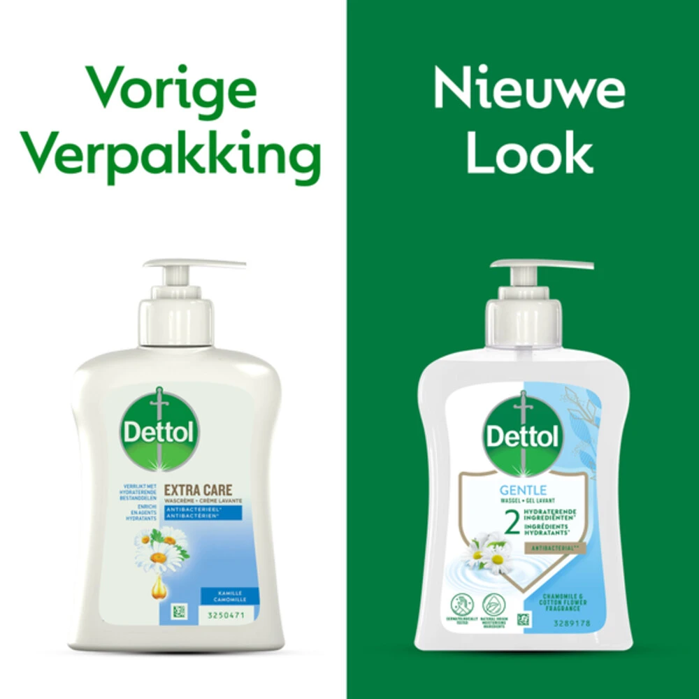 Dettol Handzeep Extra Care KamilleDettol Extra Care+ biedt een extra verzorging, voor een extra zacht gevoel. Dettol Extra Care+ met de heerlijke geur van Lotusbloem en Kamille olie beschermd de natuurlijke vochtbalans van de huid gedurende 3 uur en helpt tegen de verspreiding van bacteriën.Dettol Extra Care+ Handzeep – Extra zacht voor de huid, hard tegen vuil en bacteriën. Voor normale en gevoelige huid.Voor de gevoelige huidBeschermend en reinigendHard tegen vuil en bacteri&eu