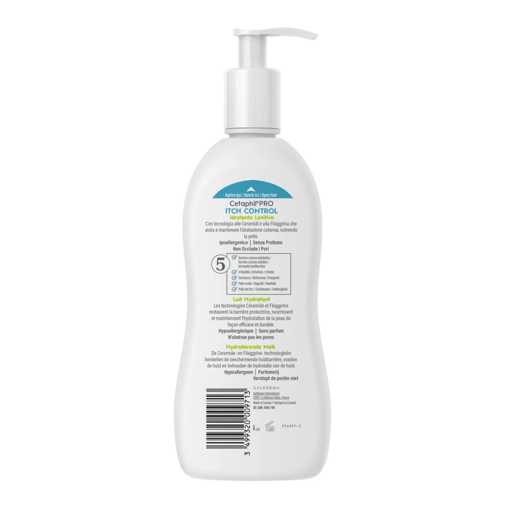 Cetaphil PRO Itch Control Hydraterende Melk 295 mlVoor het dagelijks hydrateren vande atopische, droge, jeukende huid-vermindert jeuk, roodheid en huidschilfersCetaphil PRO Itch Control Hydraterende Melk hebben we speciaal ontwikkeld om de atopische, droge, jeukende huid dagelijks genoeg te hydrateren. Atopisch wil zeggen: gevoelig voor allergische reacties. Deze reacties kunnen leiden tot hevige, soms extreme jeuk en een droge, rode huid. Deze voedende melk verzacht droge en gevoelige huid en v