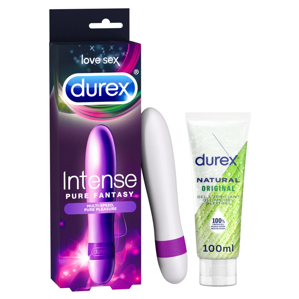 Durex Vibrator Orgasm Intense en Glijmiddel Natural PakketOrgasm Intense Pure Fantasy is een elegante vibrator, perfect voor uw nachten, alleen of met een partner. Gebruik het voor een ontdekkingsreis naar een meer bevredigende en plezierige seks. De vibraties zijn krachtig maar discreet en kunnen met de draaiknop naar wens worden versneld of vertraagd. Ontdek het pleziereffect op de huid door de tepels, clitoris en schaamlippen met Orgasm´ Intense Pure Fantasy vibrator te strelen, voordat