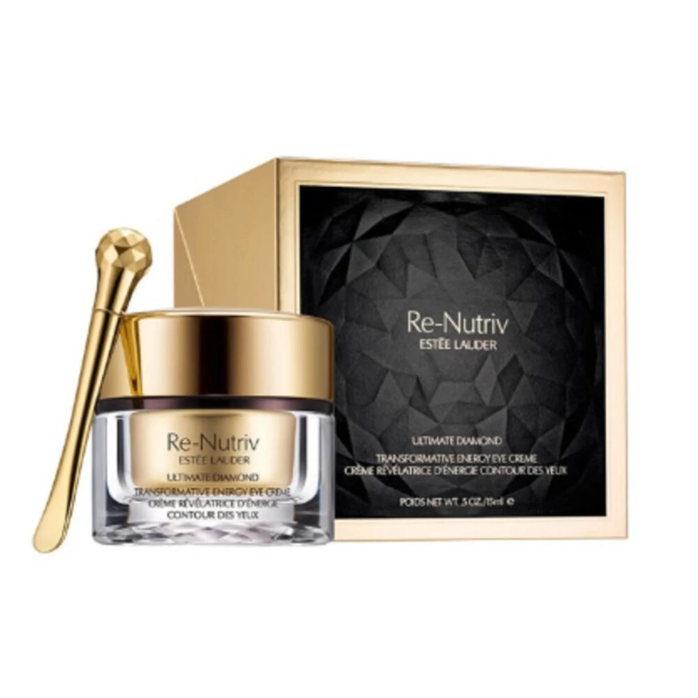 Estee Lauder Re-Nutriv Oogcreme De transformatie begint zodra deze intens rijke maar toch lichte crème uw huid raakt. Met kostbaar Black Diamond truffelextract. Met de kracht van geavanceerde, vormgevende technologieën.Uw oogcontouren zien er helderder, opgewekt en strakker uit. De contouren lijken jonger, meer gelift. Donkere kringen en zwellingen lijken verminderd zodat de ogen er gerevitaliseerd en frisser uitzien. De massagestaaf, gemaakt van een verkoelend gouden legering,