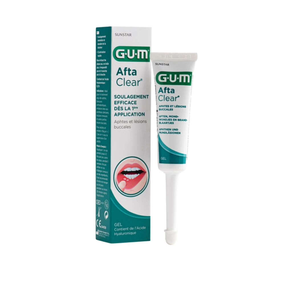 GUM AftaClear Mondgel 10 mlMedisch hulpmiddelDe GUM AftaClear Mondgel, zorgt voor een directe en langdurige pijnverlichting. Uitstekend geschikt voor lokale applicatie bij aften, brandblaartjes, irritaties van het gebit en andere mondwondjes.Kenmerken GUM AftaClear MondgelDirecte verlichting gedurende 2 tot 4 uurSnellere genezingVrij van alcoholGemakkelijk aan te brengenGeschikt voor volwassenen en kinderen vanaf 2 jaar/10 kgBrandt en prikt niet
