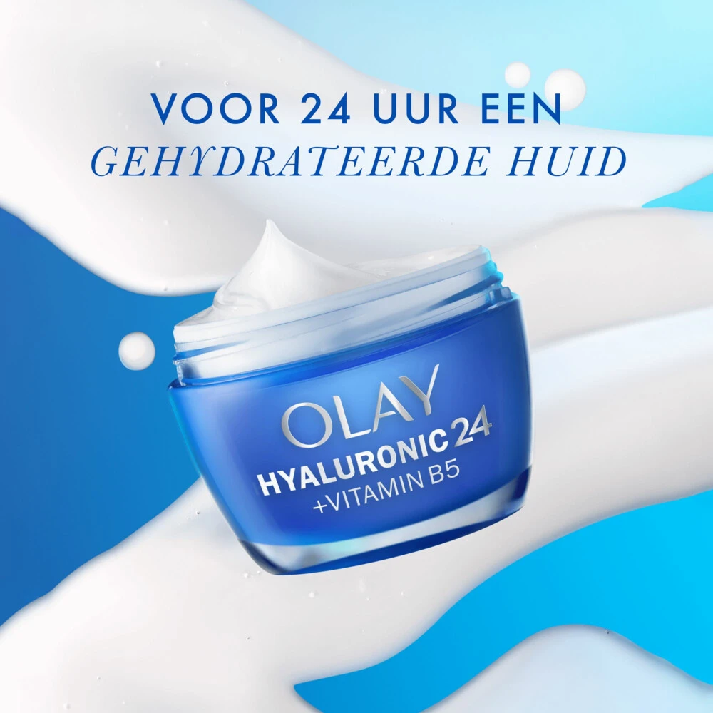 Olay Hydraterende Dagcrème Hyaluronic 24+Vitamine B5 Met HyaluronzuurLast van een vermoeide, strakke en droge huid? Ervaar een diepe, multi-laagse hydratatie. De Hyaluronic24 + Vitamine B5 hydraterende crème van Olay verbetert de vochtbarrière van de huid na slechts één toepassing en geeft je huid in 14 dagen een gladdere en gezondere uitstraling. Deze lichtgewicht, voedende en verfrissende gelformule is gemaakt met een combinatie van Hyaluronzuur en Vitamine B